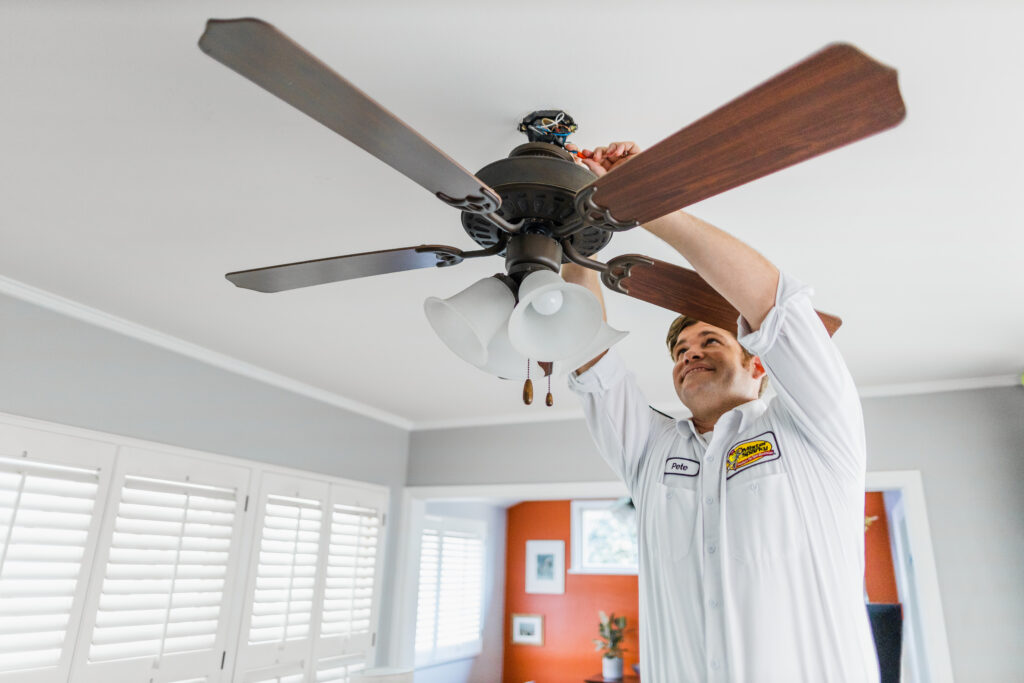 Installing a ceiling fan requires more than just swapping out a light fixture. We’ll confirm that the ceiling box is fan-rated and capable of supporting weight and vibration. Our electricians will also ensure your fan’s blades have the proper clearance from nearby walls and sloped ceilings, and follow all manufacturer guidelines for safety and efficiency, while protecting your electrical wiring.
